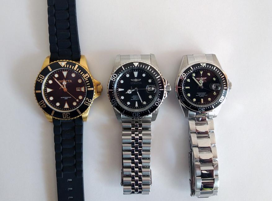 Обозреваемая модель сделана по мотивам культовых часов Rolex Submariner. В современной часовой индустрии делать часы по мотивам этой модели стало настолько распространено, что кричать «подделка!» никому и в голову не приходит. По сравнению с оригиналом, Invicta выпускает свои хомажи с куда большим разнообразием размеров и расцветок.