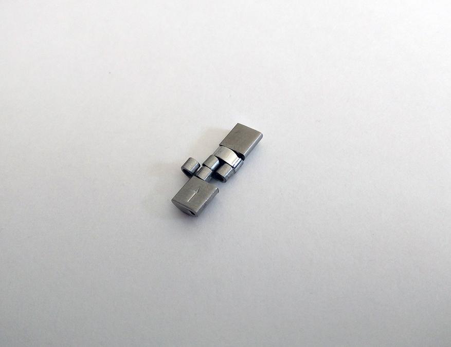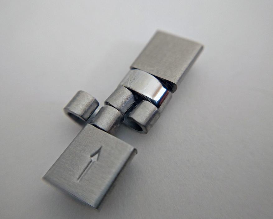 Чтобы подогнать браслет для своего запястья, я удалил по одному звену с каждой стороны от застежки. Штифты потихоньку выбивал без особых проблем.