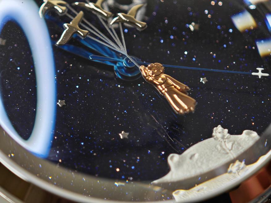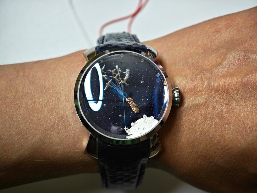 Сама по себе книга «Маленький принц», пусть и культовая, пусть и легендарная, но далеко не выдающаяся. Поэтому сделать для нее выдающиеся часы — сложная задача. Часы получились очень точными и подробными, и этот тот случай, когда можно сказать, что книга — не лучше…