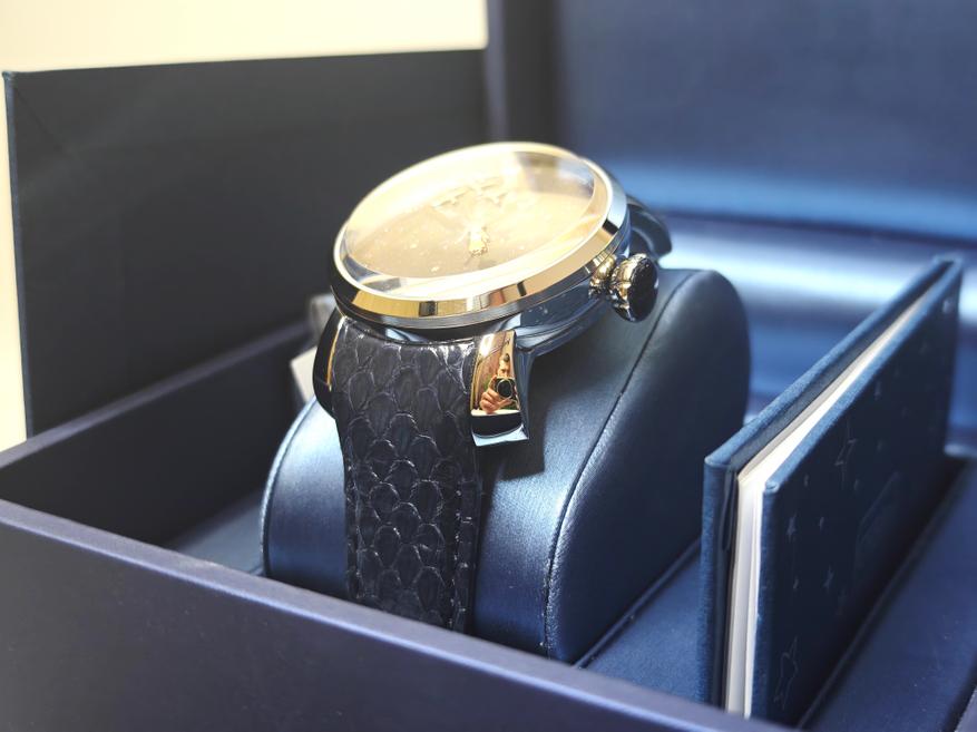 Для работы над проектом пригласили известного независимого часового мастера Антона Яицкого (Самара). И это дважды не случайность. Во-первых, модель отсылает к одной из самых известных самостоятельных работ Антона, часам «Маленькому принцу», за которой и поныне охотятся некоторые коллекционеры и не самые добросовестные часовщики: