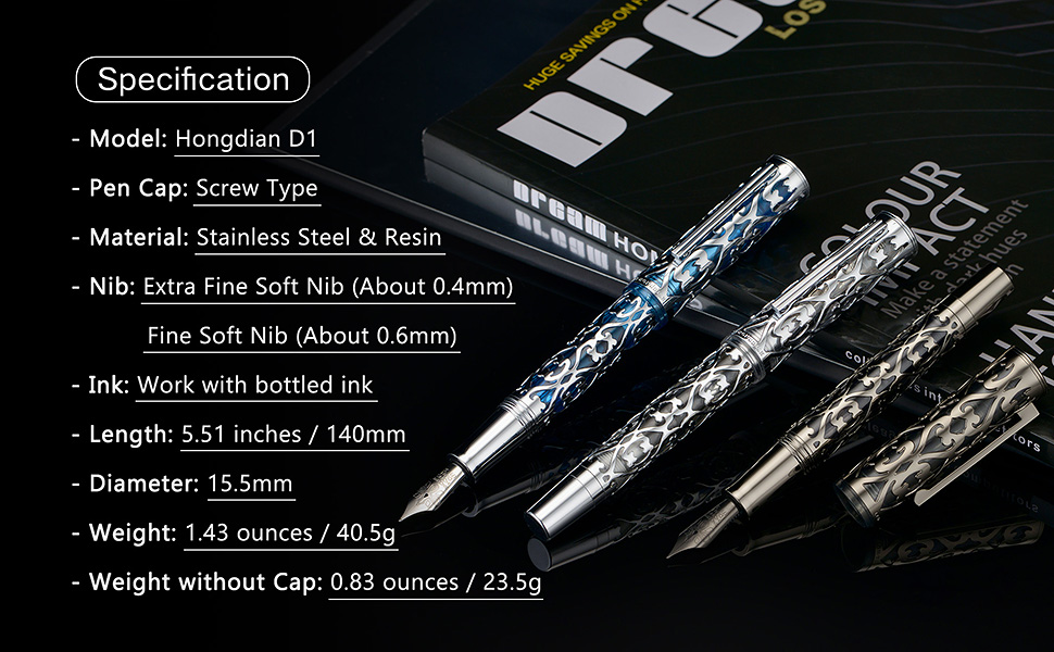 Авторучки скелетоны стали для Hongdian визитной карточкой. Эти ажурные конструкции отличаются красивым цветочно-животным орнаментом и ставшей привычной для всей продукции Hongdian поршневой системой заправки — piston filling.