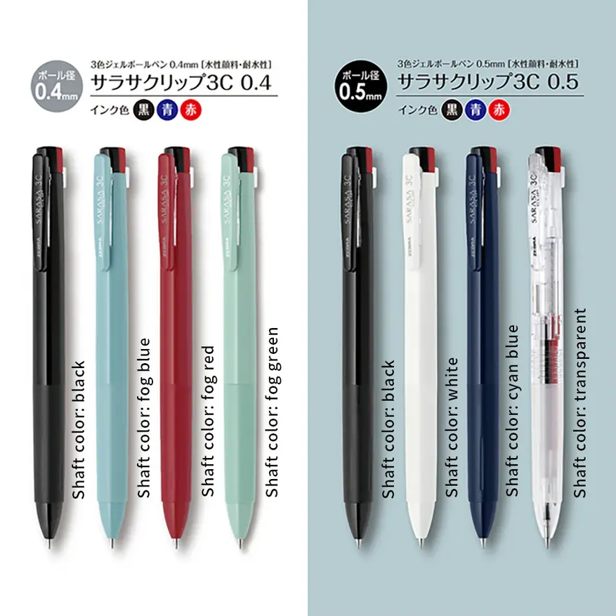 Японская компания Zebra выпустила обновлённую версию своей популярной гелевой ручки Sarasa Clip 2С — модель Clip 3C. Новую ручку отличает усовершенствованный механизм подачи стержня, который получил название «боковой пружинный механизм». Обновлённая модель стала на 8% тоньше и на 7% легче своих предшественников. Это решение производителя позволяет бороться с проблемой громоздкости, которая часто свойственна многоцветным гелевым ручкам.