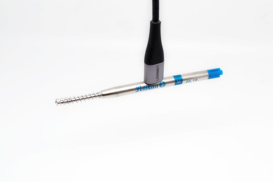 В каталогах упоминается что установлен стержень Pelikan ISO 12757-2 с dokumentenechte Paste. Увы, у нас просто Pelikan размера М и он… Он изготовлен из стали. Проверено магнитным кабелем. Он магнитится!