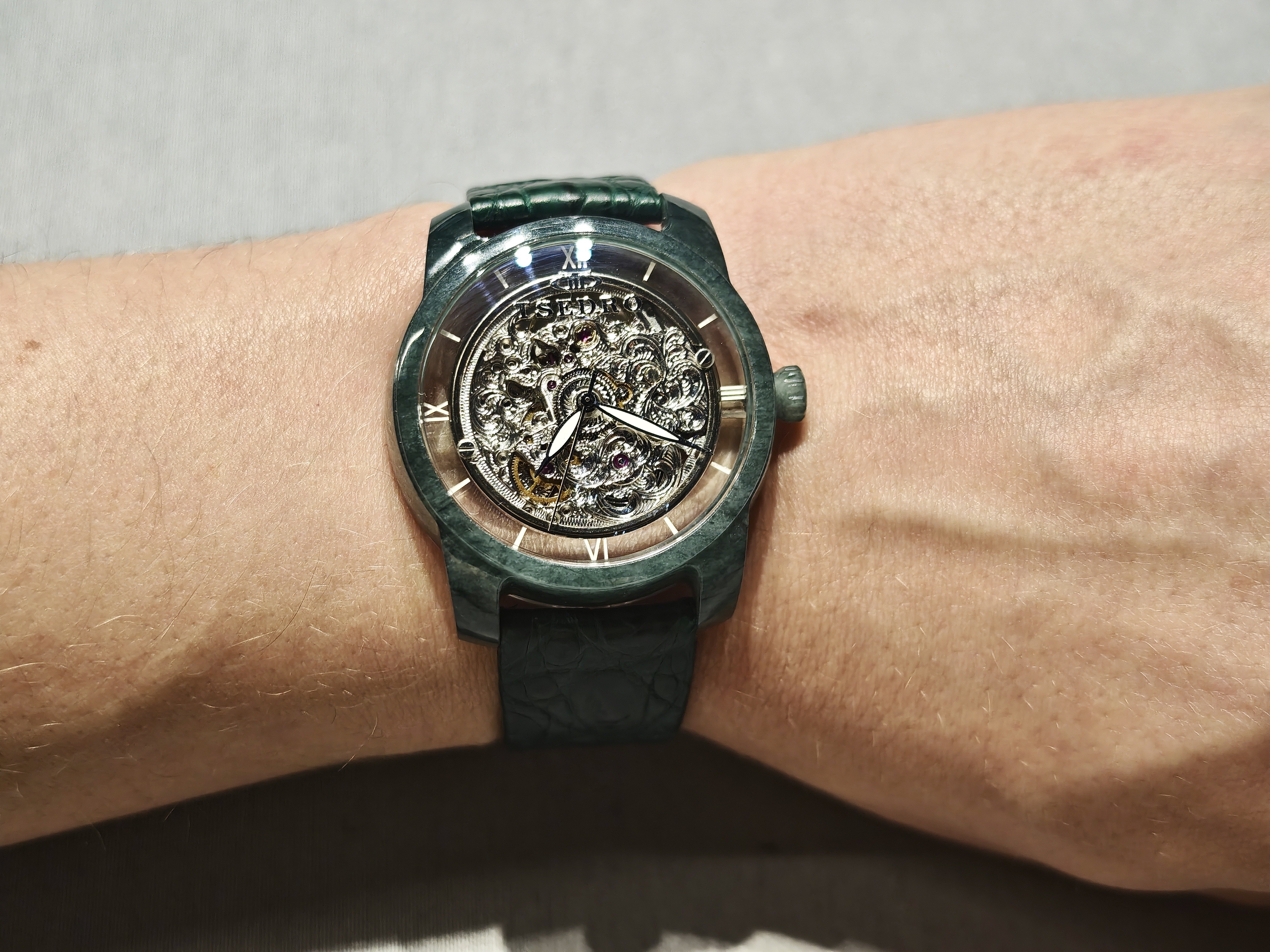 То, что натуральные природные камни проникают в часы, давно не секрет, а вот то, что они уже даже выходят наружу… Все еще редкость. Один из самых необычных корпусов — корпус новых Tsedro из нефрита.