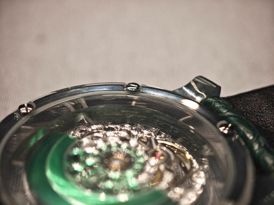С обратной стороны калибр закрыт сапфировое крышкой, закрепленной на винты: