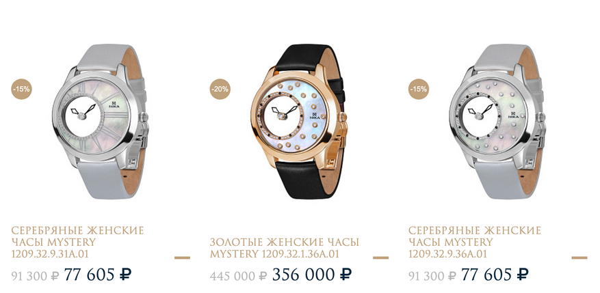 Заслуга нашего ювелирного завода в том, что им удалось производить это серийно, да еще и на кварце, существенно снизив стоимость: модельный ряд Mystery в бутиках стартует от 80 тысяч рублей!