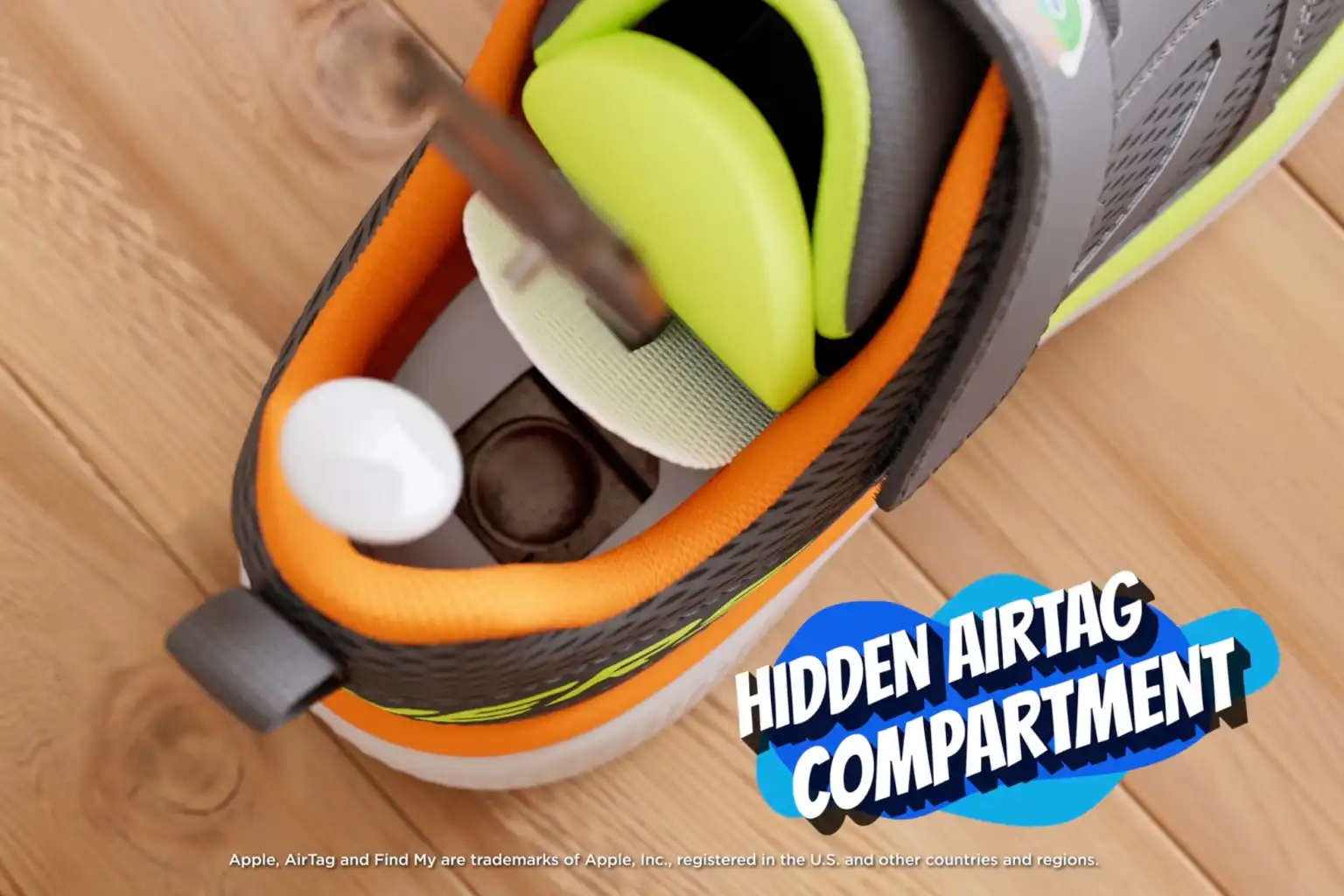 Компания Sketchers выпустила новую линейку детской обуви Find My Sketchers, оснащенную специальным отделением для размещения трекера Apple AirTag. Главная особенность коллекции — незаметный отсек в форме AirTag, расположенный под съемной стелькой обуви.