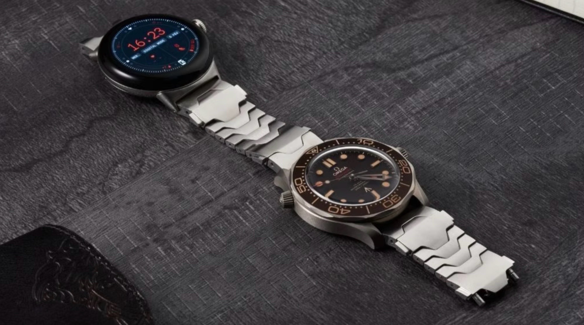 Конструкция браслета предусматривает крепление одного устройства на внешней стороне запястья, второго — на внутренней. Такое решение дает возможность совмещать использование механических часов с фитнес-трекерами или смарт-часами без необходимости занимать обе руки.