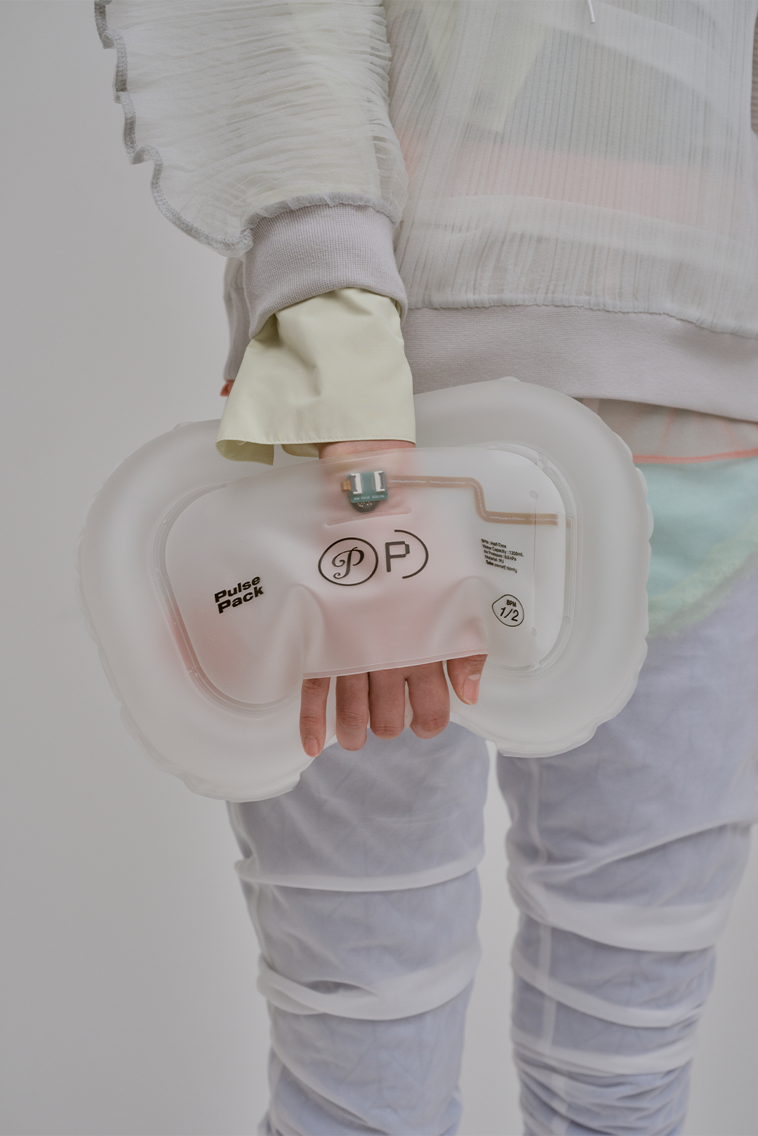 Сумка оснащена встроенным датчиком сердечного ритма, который соприкасается со спиной пользователя. Устройство анализирует частоту сердечных сокращений в режиме реального времени и генерирует вибрационные импульсы, которые в два раза медленнее текущего пульса. Тактильный датчик передает физическую вибрацию на область позвоночника и лопаток через материал сумки.