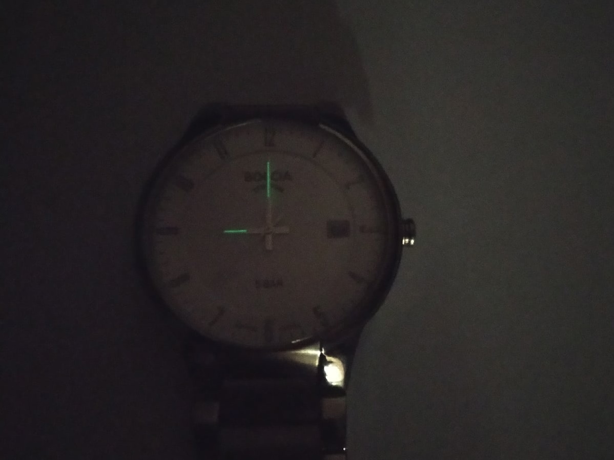 Стрелки имеют люминесцентное покрытие, которое довольно ярко подсвечивает их в темноте. Цифры такого покрытия не имеют.