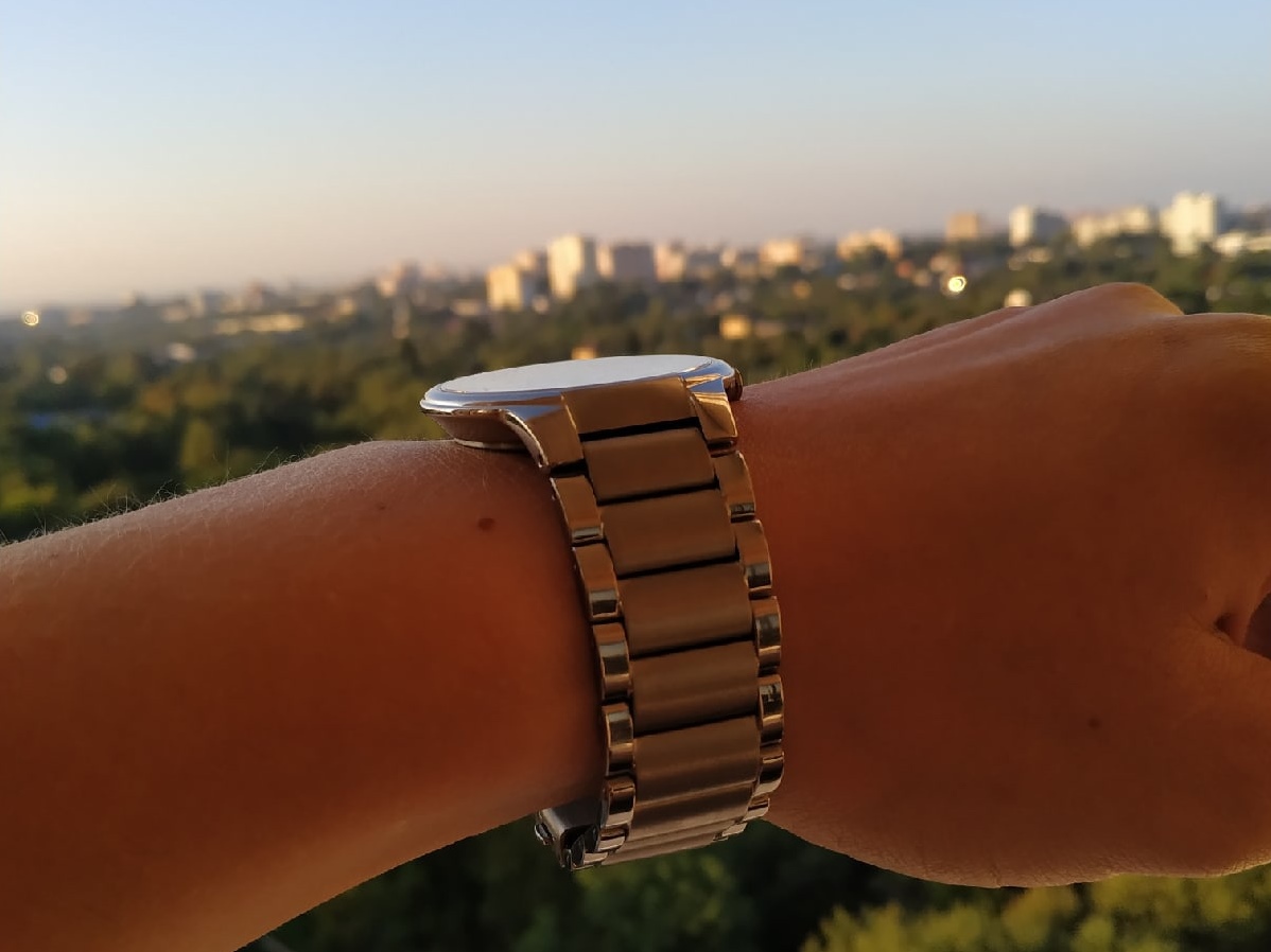 Вес часов всего 71 гр. При носке они не вызывают дискомфорта ни из-за веса ни из-за формы. Браслет не прилипает к руке, как у модных в последнее время спортивных часов.
