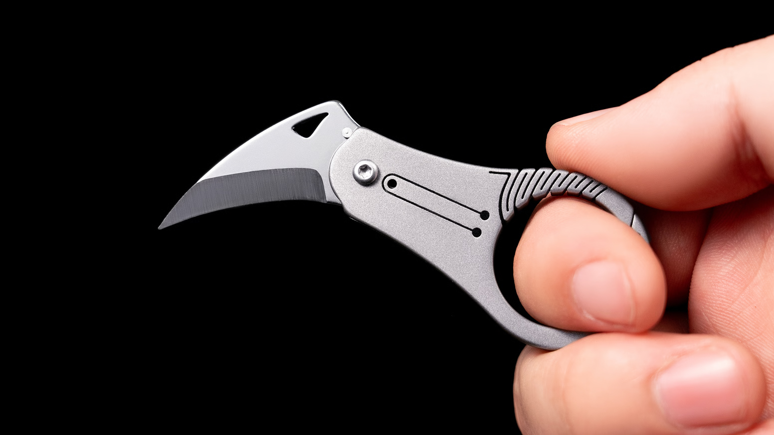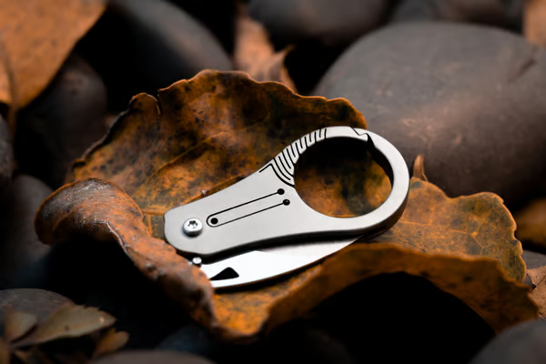SpearEdge позиционируется как миниатюрный титановый нож, специально разработанный для аккуратных и контролируемых режущих движений «на себя». Ключевая особенность конструкции — изогнутая геометрия лезвия, вдохновленная формой когтя ястреба (по словам Edgelet). Такая форма издавна доказала свою эффективность в инструментах для работы с веревками, упаковкой и гибкими материалами.