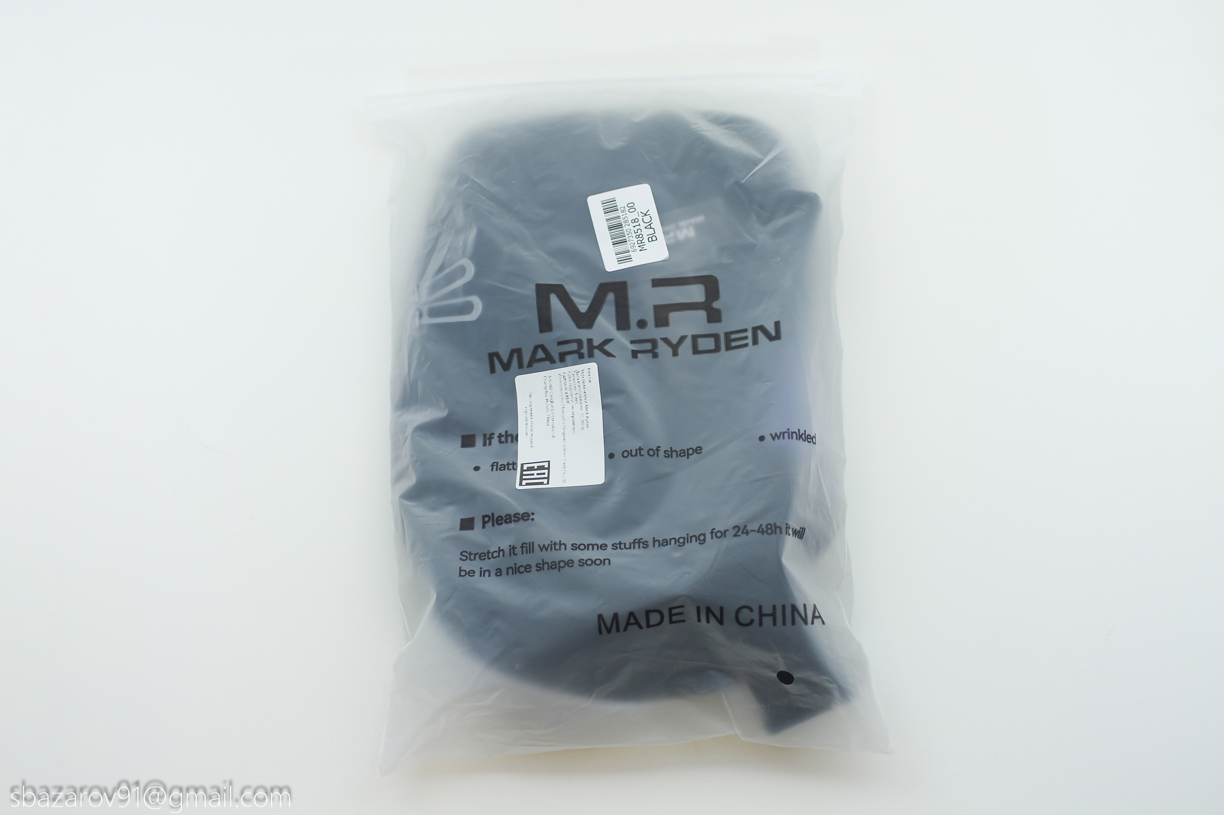 Мой заказ был оформлен на площадке СберМегаМаркет с быстрой доставкой и значительным процентом возврата бонусами спасибо. В качестве заводской упаковки — фирменный пакет с зип-локом. Много лет назад я уже приобретал рюкзаки MR (Mark Ryden) с Aliexpress, так вот с тех пор упаковка не изменилась.