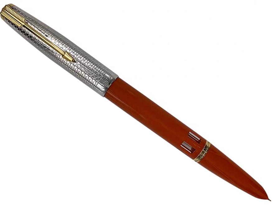 Новая ручка Wingsung S925 Double Bead Limited Edition с золотым 14-каратным пером, 585 проба, относится к 601-й линейке ручек и создана на основе 601 китайской версии Parker 51. Ручка имеет большие смотровые окна, которые позволяют контролировать уровень чернил. Колпачок ручки выполнен в стиле, напоминающем стрелу с оперением, как у ручек Parker.