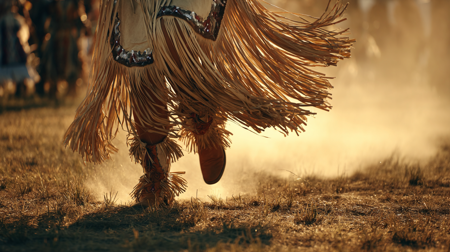 В танцах пау-вау это особенно видно. В мужском травяном танце длинные ленты и пряжа заменили тяжёлые перья и теперь именно бахрома «рисует» воздух, отсылая к колышущейся степной траве. В женских стилях она подчёркивает шаг и поворот, собирает внимание зрителя на жесте. Я бы даже сказала: без бахромы часть пластики просто невидима. Она переводит движение тела на понятный глазу язык.