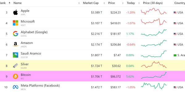 BTC бросает вызов серебру: новый рекорд на криптовалютном рынке