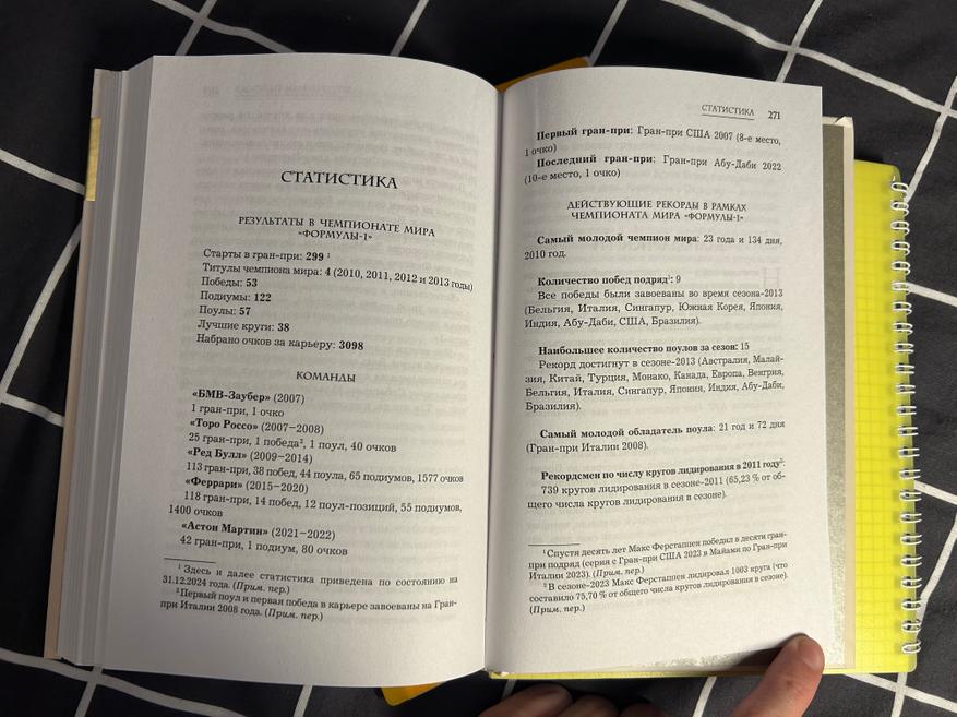 В 2025 году на полках российских магазинов появилась книга про Себастьяна Феттеля — четырёхкратного и самого молодого чемпиона мира Формулы-1, а также обладателя множества рекордов. Немецкий гонщик дебютировал в Королеве автоспорта в 2007 году, в 2010 завоевал свой первый титул чемпиона, а в 2013 установил рекорды, державшиеся до 2023 года. В этом обзоре рассмотрим книгу, её содержание и оформление.