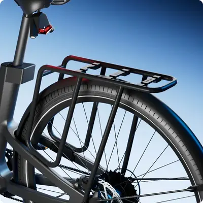 В настоящее время в комплект продажи входят парковочная подножка и крылья. Установленный модуль GPS-слежения предназначен для защиты велосипеда от кражи.
