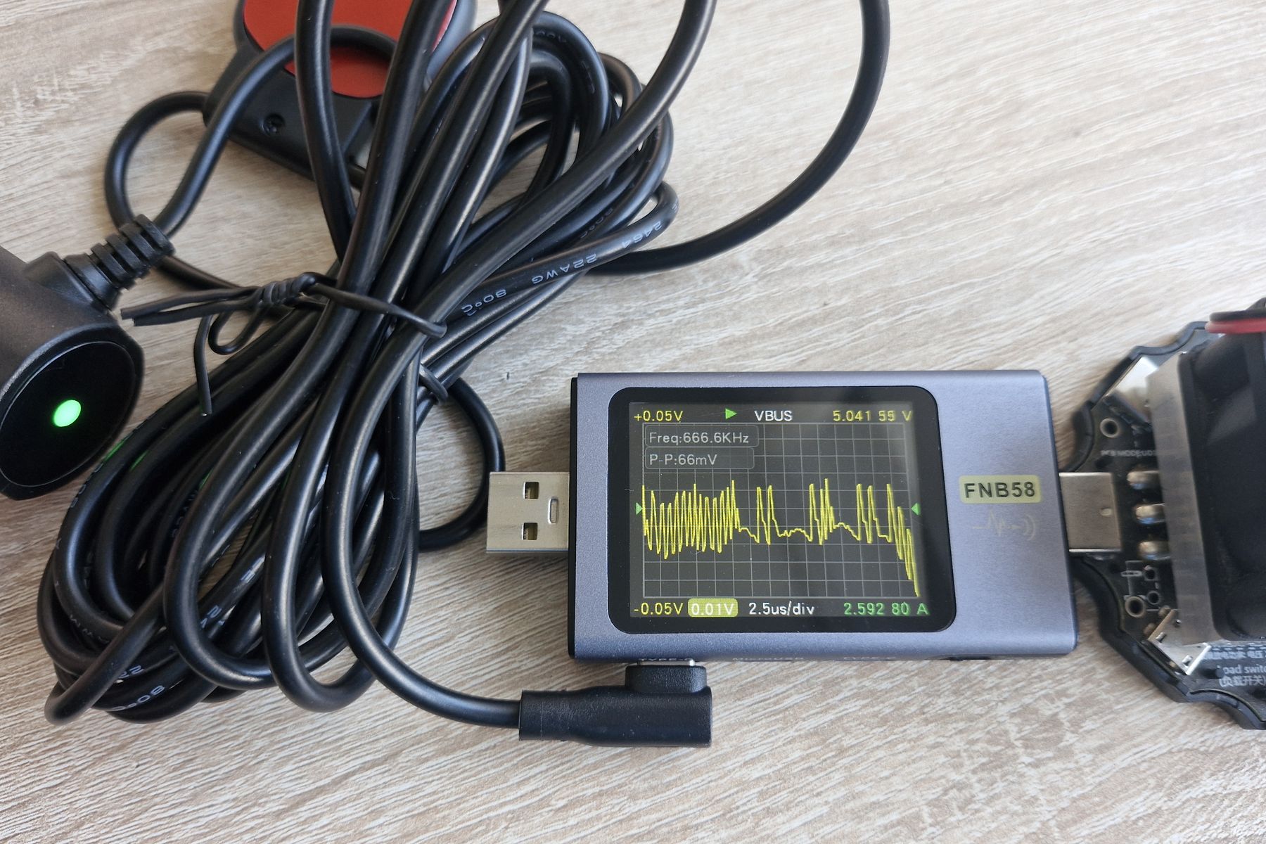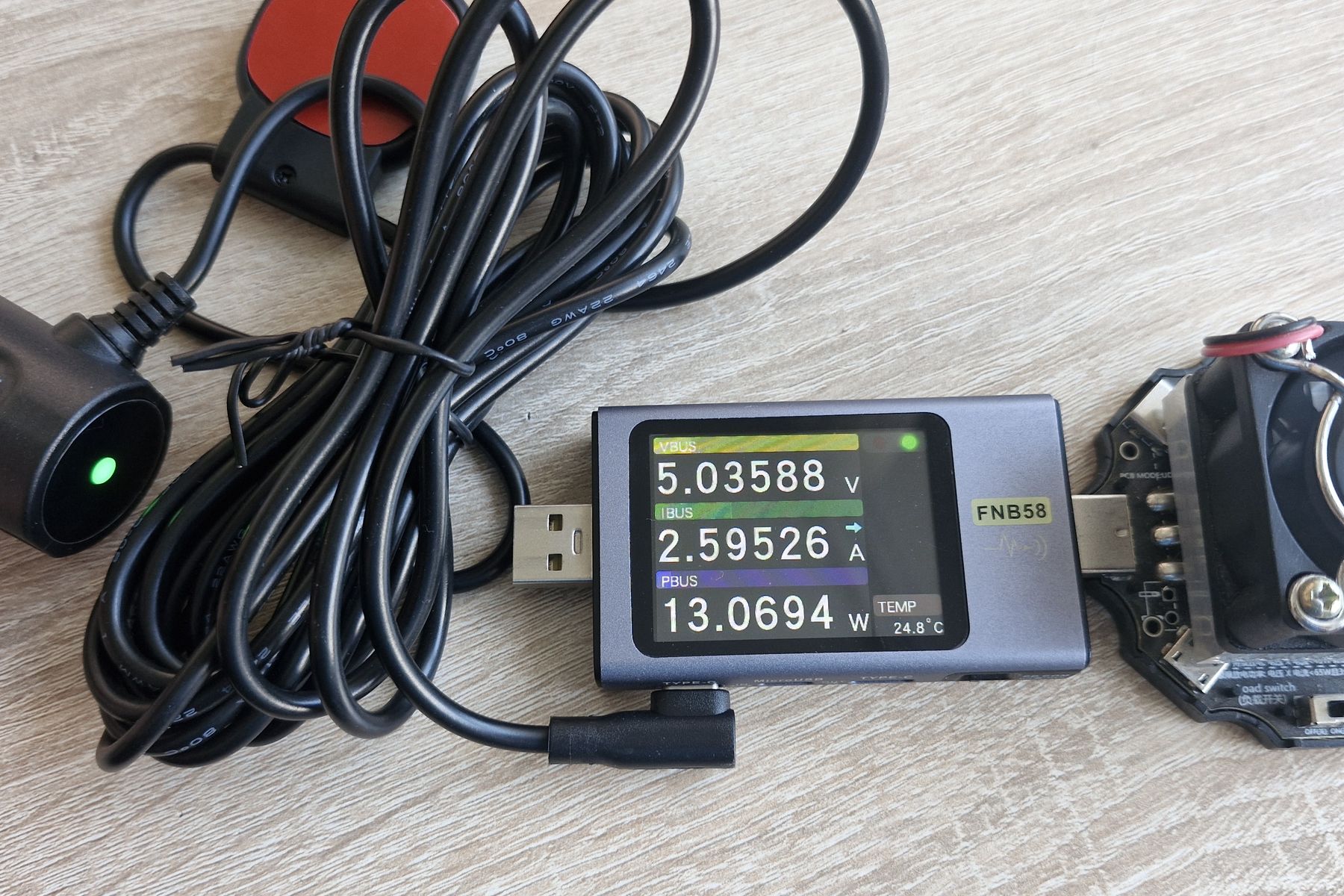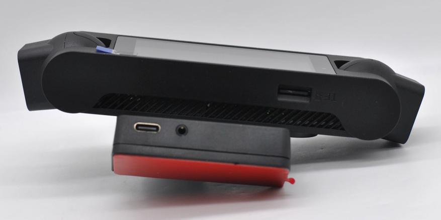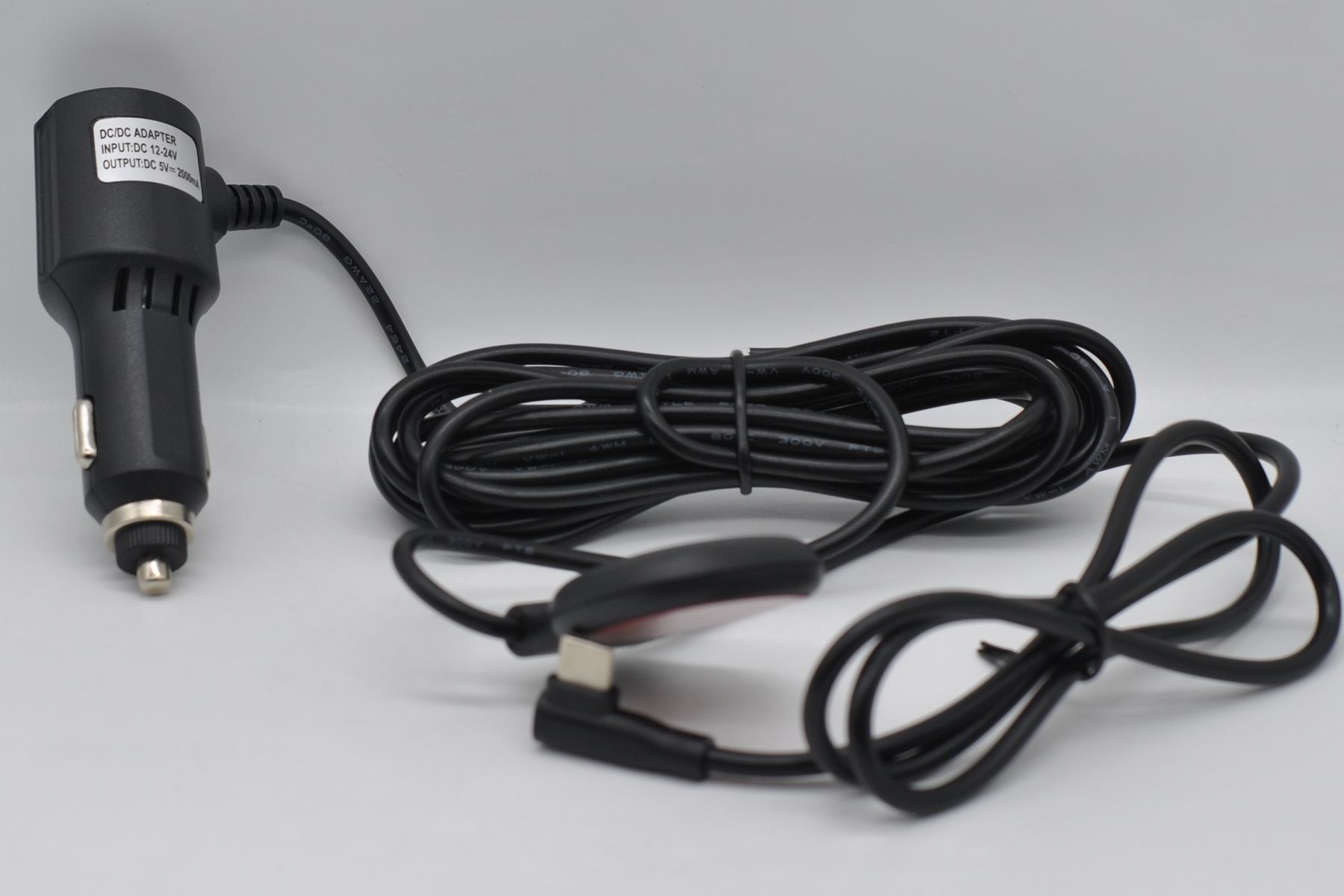 Рассмотрим блок питания регистратора, на первый взгляд обычный адаптер в разъем прикуривателя, но тут на кабеле установлен GPS-модуль (крепится на двухсторонний скотч). Кабель оканчивается угловым Type С разъемом.