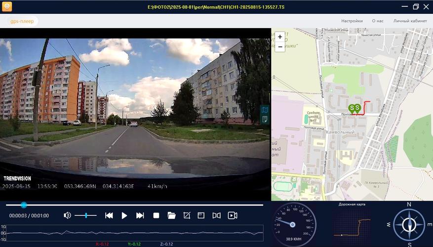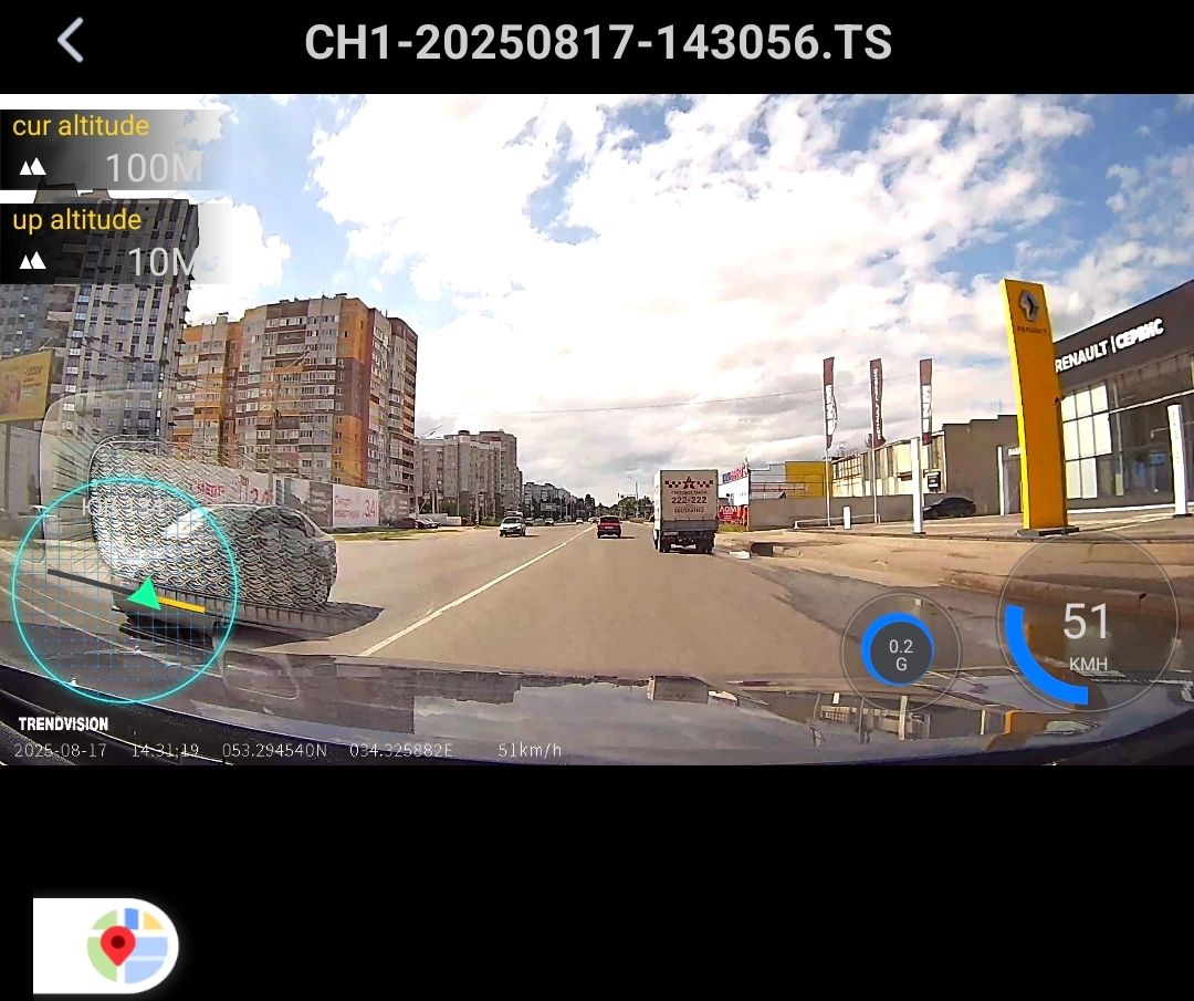 Плеер GXPlayer позволяет просматривать так же трек поездки по карте (на выбор несколько вариантов, включая OSM):