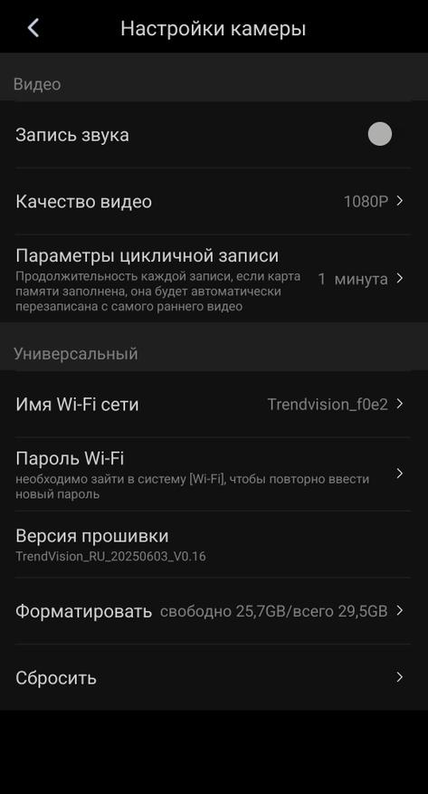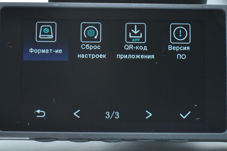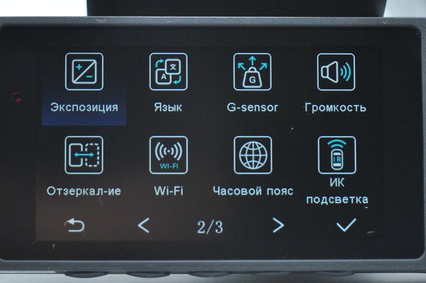 Из полезного: можно просмотреть отснятый материал, выбрать разрешение 2K для фронтальной камеры (но это будет интерполяция), выбрать длину ролика записи, отзеркалить камеры, выбрать время отключения экрана, настроить ИК подсветку боковых камер, включить Wi-Fi и получить QR для мобильного ПО.