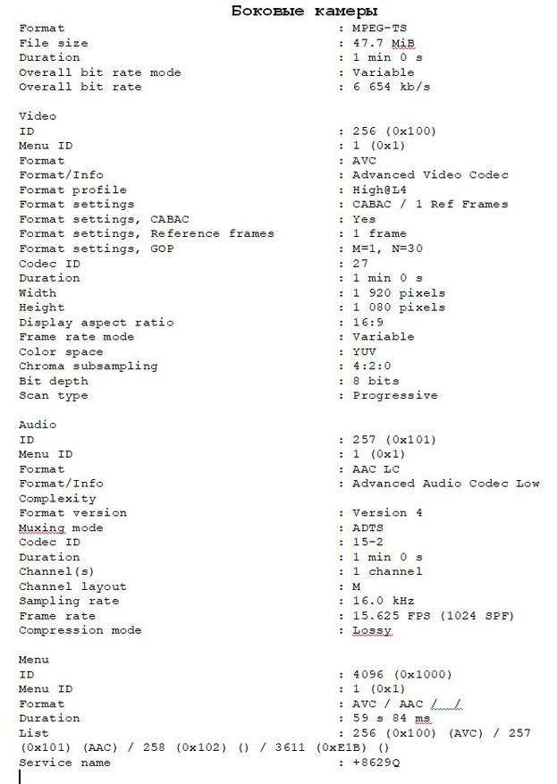 | Формат записи | TS, кодек H.264 |