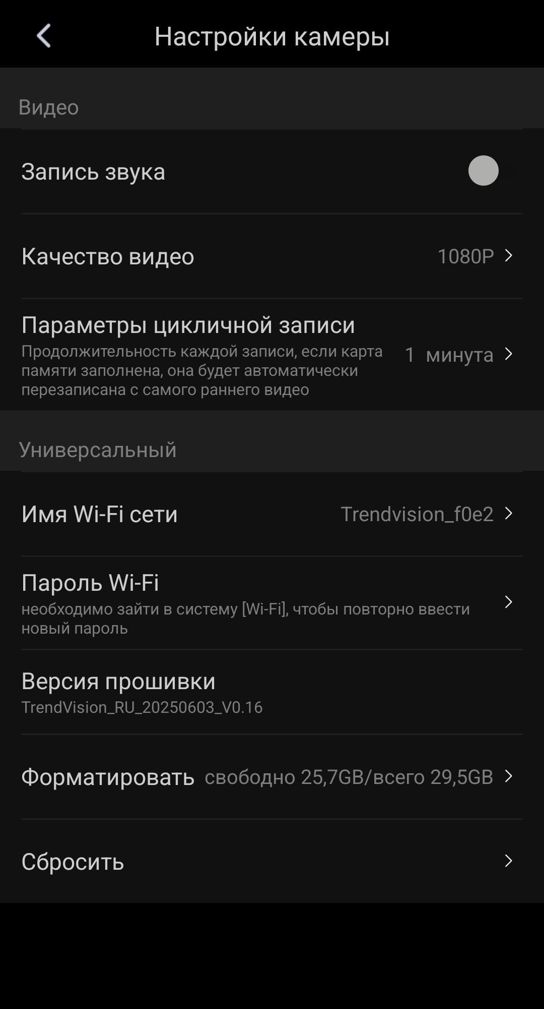 | Парковочный режим | Есть (работает только с TrendVision HardWare Kit) |