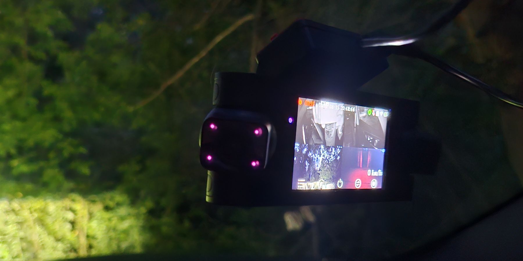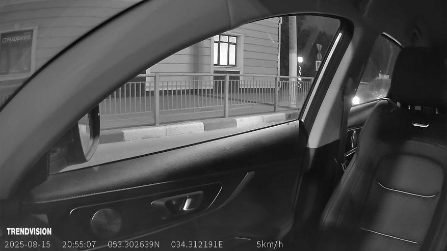 Ночная съемка салона получается довольно детальной, плюс поворотные камеры позволяют точно настроить место съемки (место водителя пассажира или вид из бокового стекла на дорогу). Настройка положения от тряски не сбивается.
