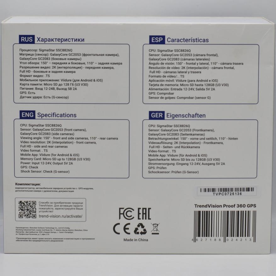 Видеорегистратор TrendVision Proof 360 GPS — интересное решение для обеспечения всесторонней безопасности на дороге. Четыре камеры, объединенные в одном устройстве, создают полную картину происходящего вокруг автомобиля. Полный охват пространства вокруг автомобиля не часто можно увидеть в автомобильных решениях. Боковые поворотные камеры позволяют точно настроить положение съемки и оснащены ночной ИК подсветкой. Отмечу поддержку парковочного режима при покупке опционального TrendVision HardWare Kit. Не забыты две важные функции современного автомобильного регистратора: GPS для штампа скорости и координат в запись и Wi-Fi для мобильного ПО (удобный просмотр роликов и настройки).
