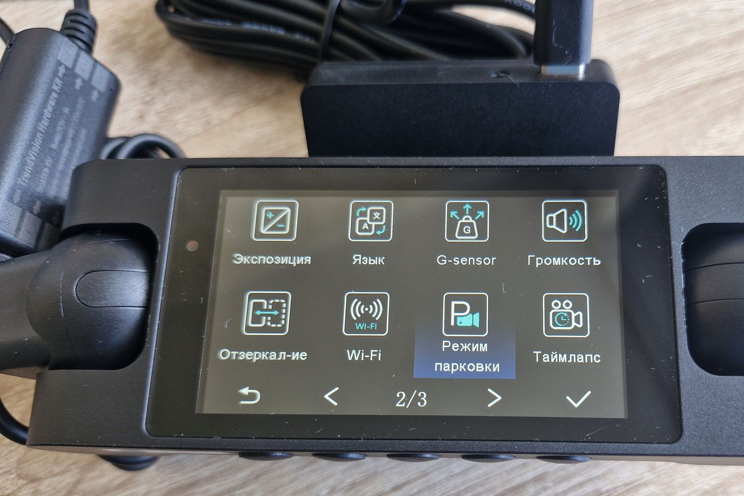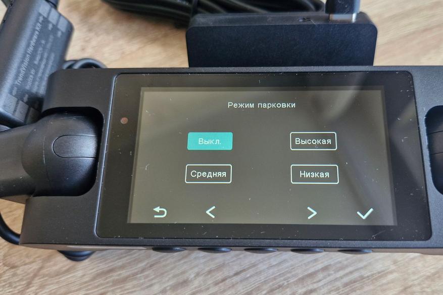 При подключении опционального кабеля питания HardWare Kit (USB Type-C) напрямую от АКБ автомобиля в меню этой модели появляются два новых пункта: «Парковочный режим» и «Таймлапс».