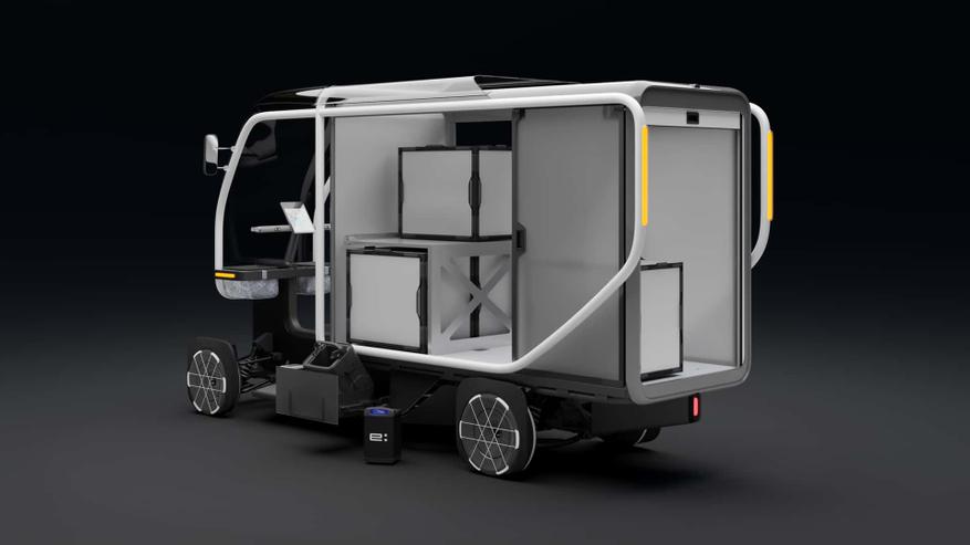 Между тем, большая версия будет иметь длину 144 дюйма (3,65 м) и ширину 48 дюймов (2,1 м), а максимальная полезная нагрузка составит 650 фунтов (295 кг). Максимальная скорость обеих моделей составляет 12 миль в час (20 километров в час), а максимальная дальность поездок при полной загрузке составляет 23 мили для большой версии. (дальность поездок для малой версии пока не обнародована).