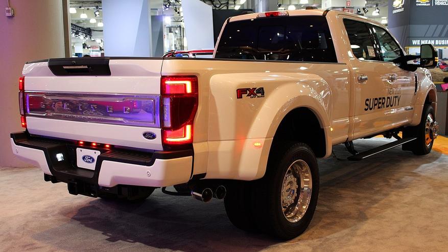 Лидером рейтинга становится американский гигант Ford F-450 в конфигурации Crew Cab. Он достигает рекордной длины 6761 миллиметр при ширине 2438 миллиметров и высоте до 2085 миллиметров. Снаряженная масса составляет 3900 килограммов, при этом автомобиль официально классифицируется как легковой.