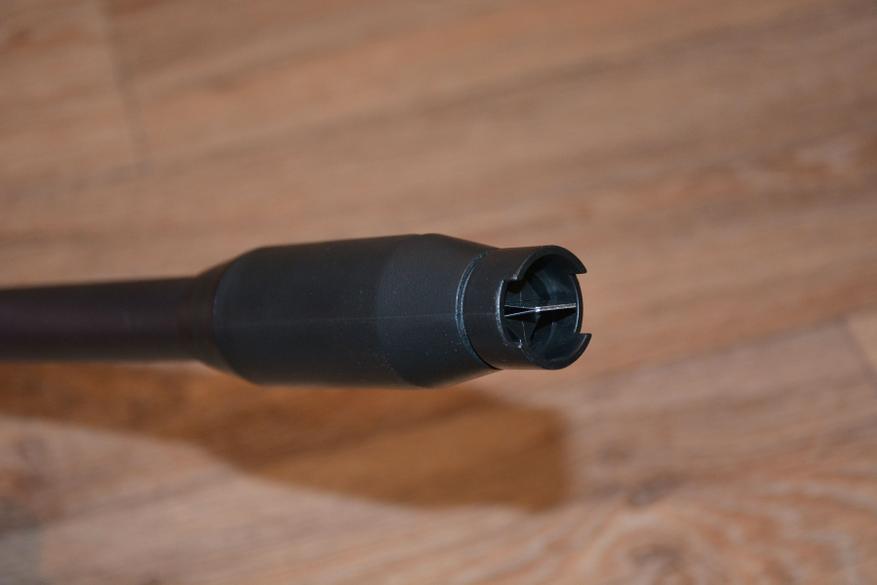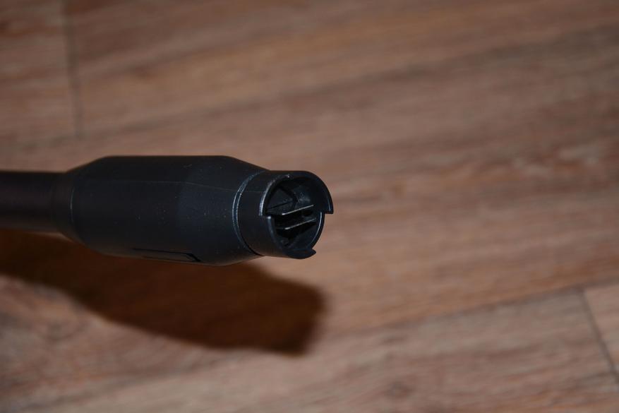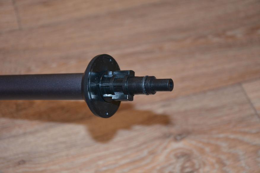В передней части находится гнездо с замком для установки трубки. Кстати, в моем случае комплектация базовая, а в расширенной дополнительно имеется еще одна, короткая трубка, но с формирователем струи разной конфигурации, пеногенератор и складное ведро.