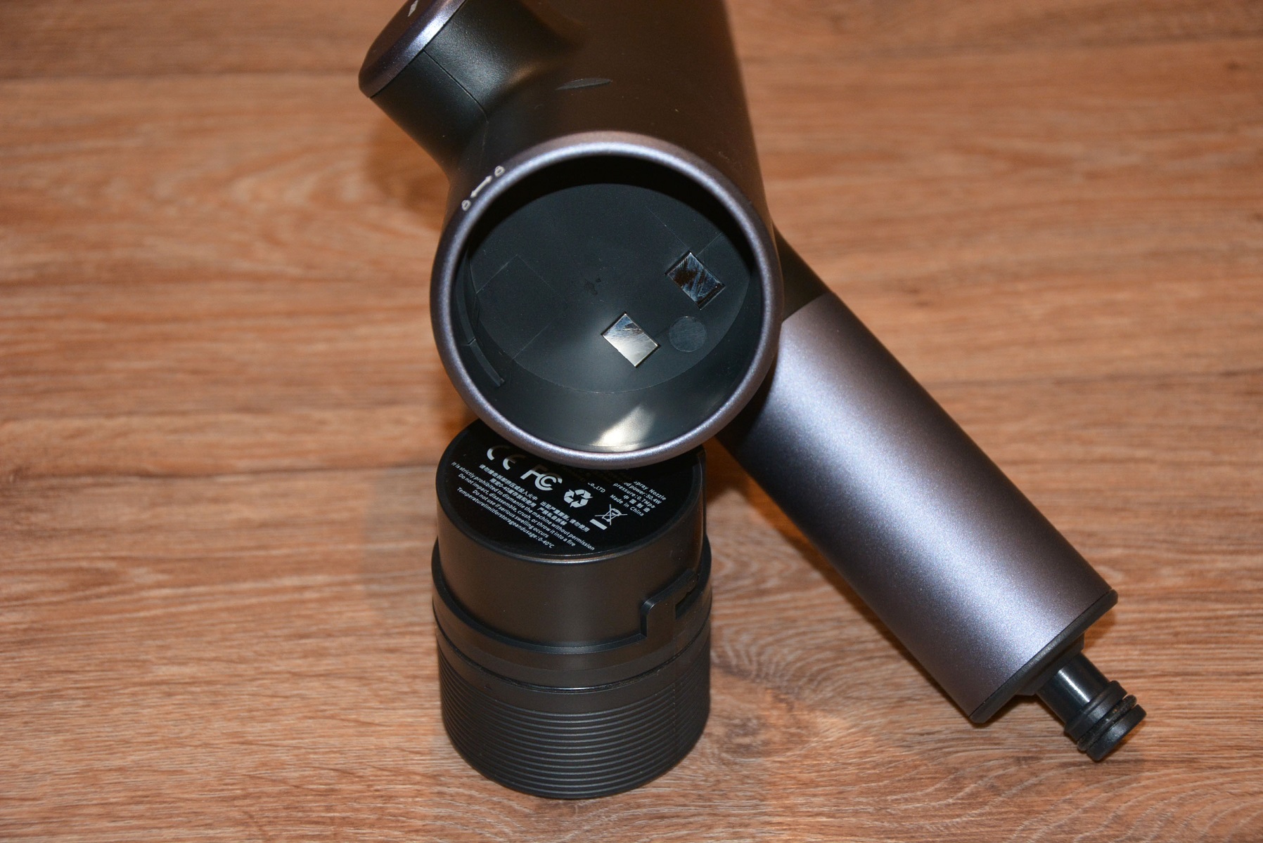 Аккумулятор достаточно увесистый, но развесовка выполнена удачно и аккумулятор хорошо уравновешивает всю мойку в собранном виде. Вынимается он из корпуса легко, но крепится в нем надежно и имеется уплотнительное силиконовое кольцо, защищающее внутренний мир мойки и контакты от пыли и влаги.