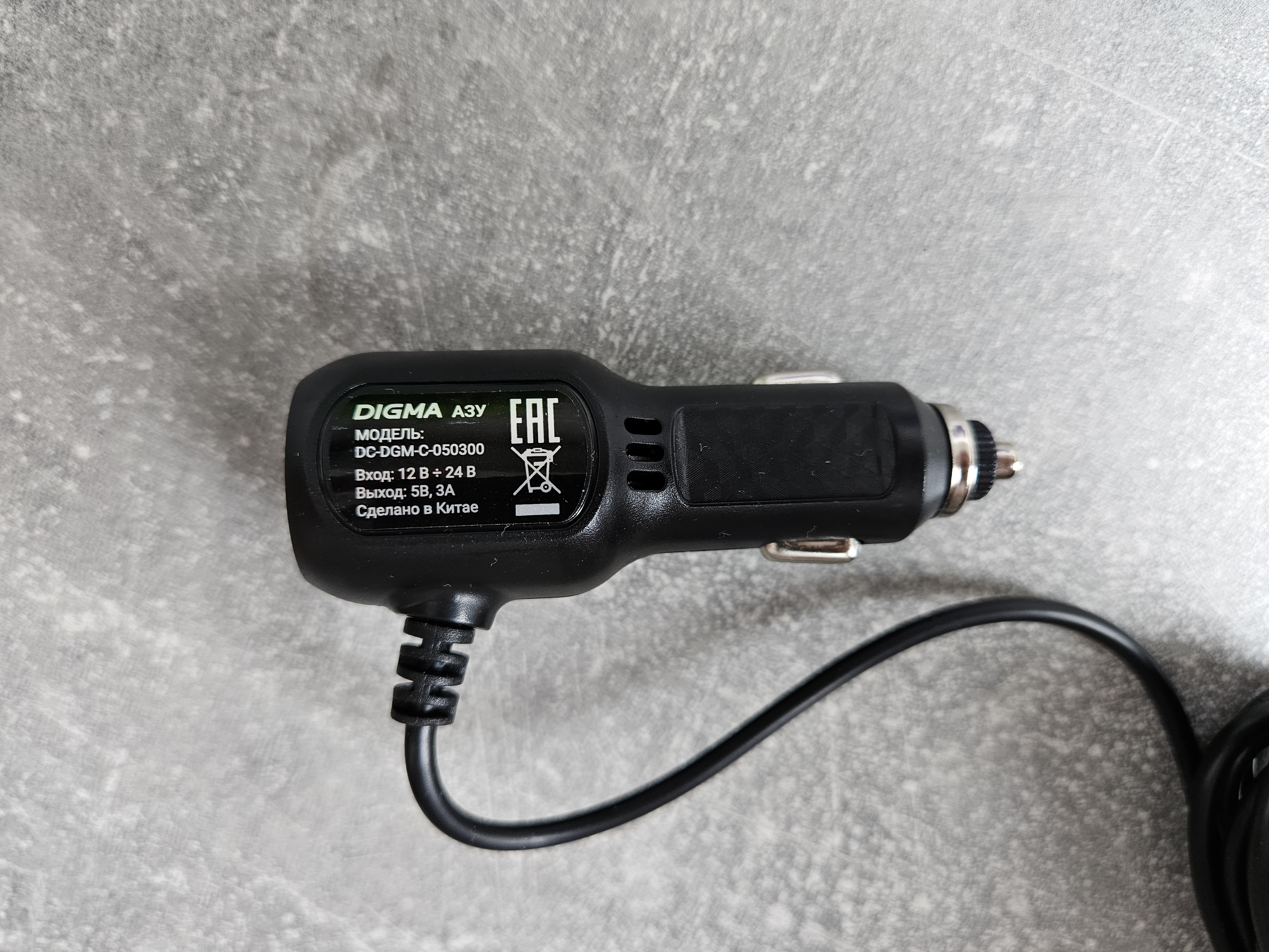 Автомобильное зарядное устройство (АЗУ) вставляется в прикуриватель и работает в бортовых сетях 12В и 24В, его технические параметры указаны на корпусе. На выходе оно имеет разъем usb type в Г образной форме.