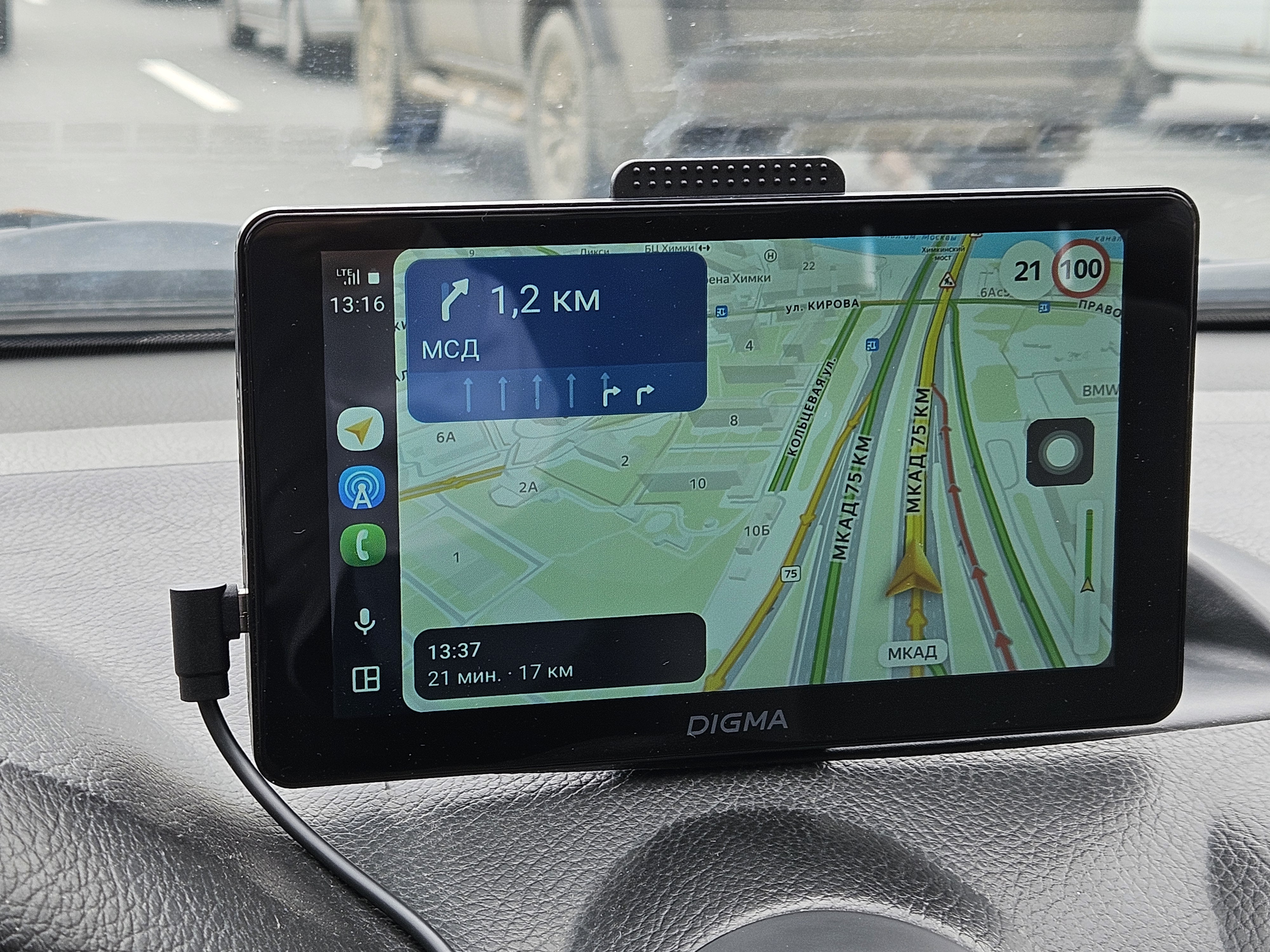 - Получил большой экран для вывода маршрута Яндекс.Навигатора (в Digma он явно больше, чем на смартфоне Galaxy S23)