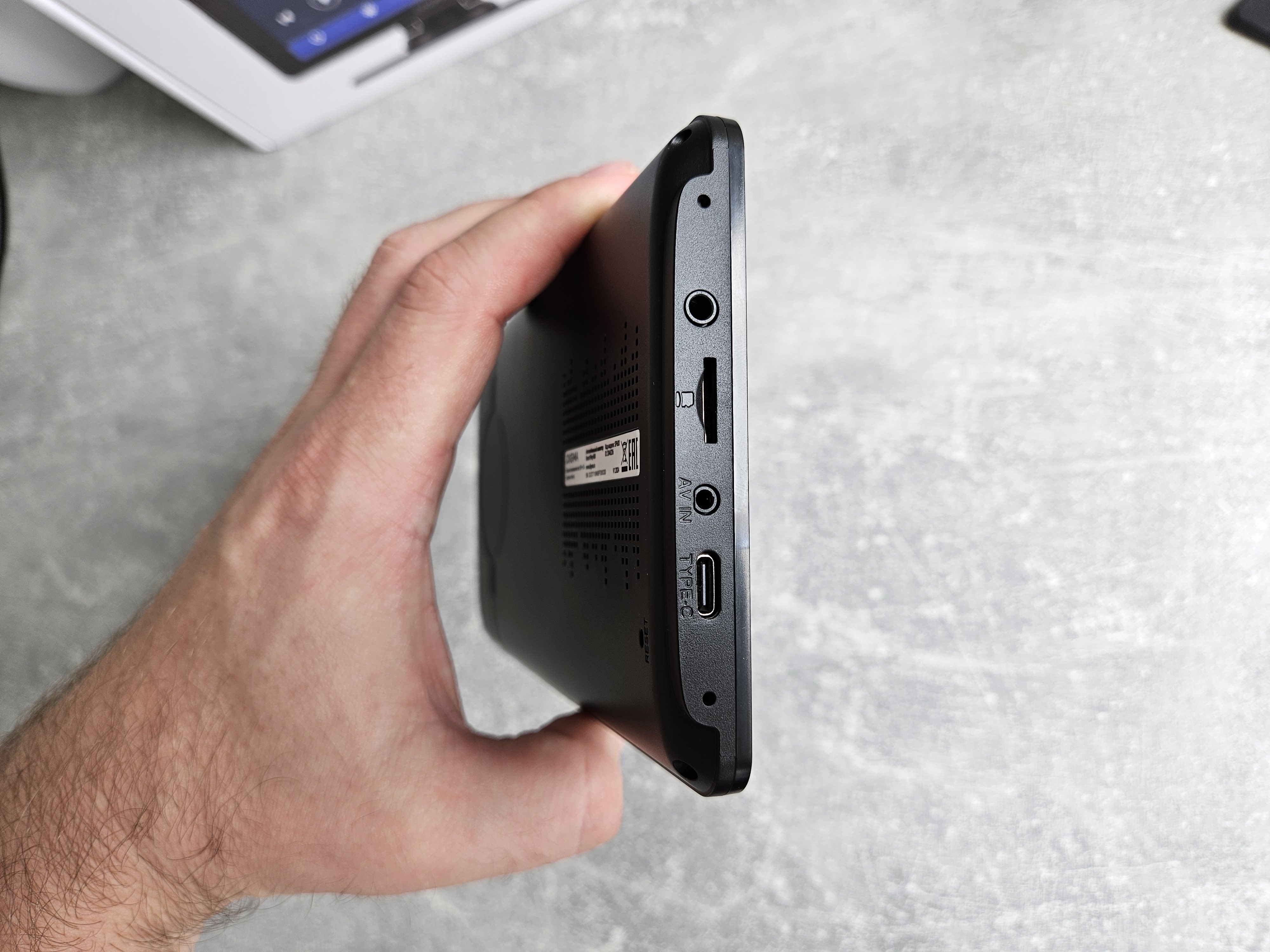 - Левая грань — usb type c для питания, AV IN для кабеля камеры заднего хода, microSD слот и AUX