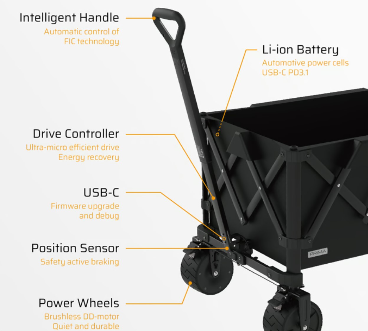 Самоходная тележка Aurrino PRIMA с электроприводом поможет перевезти продукты на пикник, забрать вещи на дачу, отвезти что-то тяжелое в горку или спустить со склона — грузоподъемность составлять более 130 килограммов. Этот проект представлен на днях на площадке Kickstarter и уже собрал нужную сумму за реализации. Размер тележки составляет 110 сантиметров на 66 сантиметров при высоте (с учетом колес) 65 сантиметров. В сложенном виде: 44 сантиметра на 32 сантиметра.
