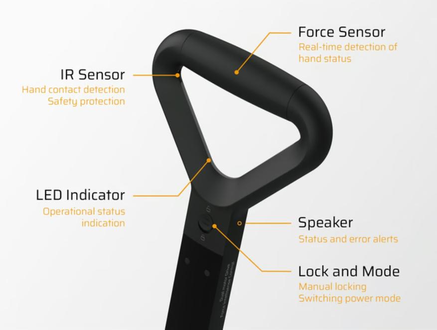 Проект выглядит интересным, хотя бы потому, что корпус тележки выполнен складным и легко помещается в небольшом объеме, например, в багажнике автомобиля. Ручка представляет собой многофункциональный пульт, позволяющий не только активировать движение или остановить тележку, но и отрегулировать скорость передвижения. Предусмотрены голосовые команды, интеллектуальное отслеживание препятствий по ИК-сенсору, а также обратная связь с динамиком.