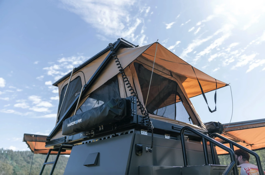 В комплектацию входят выдвижная кухня с индукционной варочной панелью, двуспальная жёсткая палатка на крыше с матрасом толщиной 140 мм, 270-градусный свободностоящий тент и душевая палатка с точкой подключения горячей воды. Производитель заявляет о возможности полной установки лагеря менее чем за 5 минут.