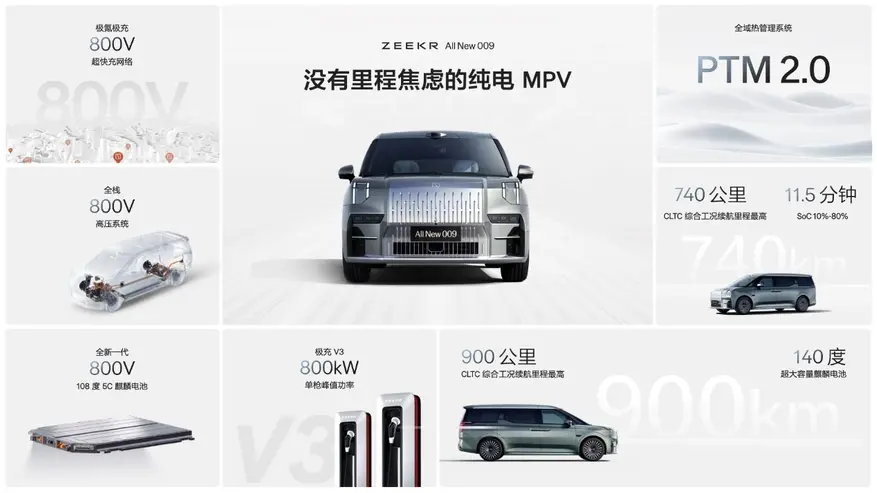 Новая серия MPV extreme Krypton 009 pure electric поставляется в стандартной комплектации с высокопроизводительным электроприводом из карбида кремния, обеспечивающим максимальное ускорение за 3,9 секунды. Автомобиль также оснащен передней двухрычажной и задней интегрированной многорычажной независимой подвеской, электромагнитным демпфированием CCD, входящим в стандартную комплектацию всех серий, пневмоподвеской с двумя полостями, подъемом шасси и интеллектуальной функцией magic carpet.