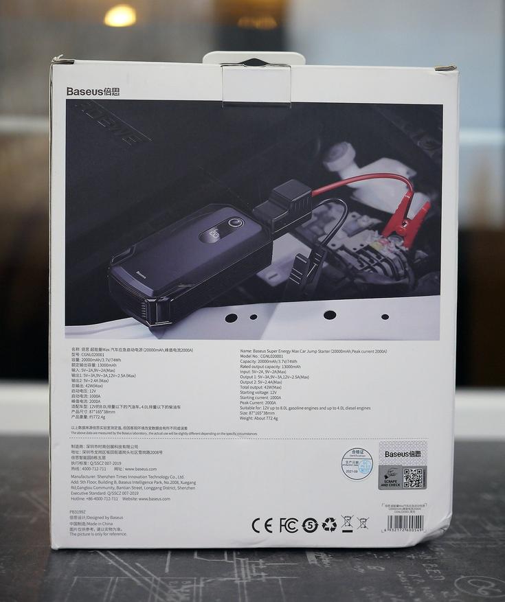 Это третья, самая мощная, модель в линейке пусковых устройств от Baseus, которое, как заявляет производитель, позволяет заводить бензиновые автомобили с рабочим объемом до 8.0 л или дизельные автомобили с рабочим объемом до 4.0 л.
