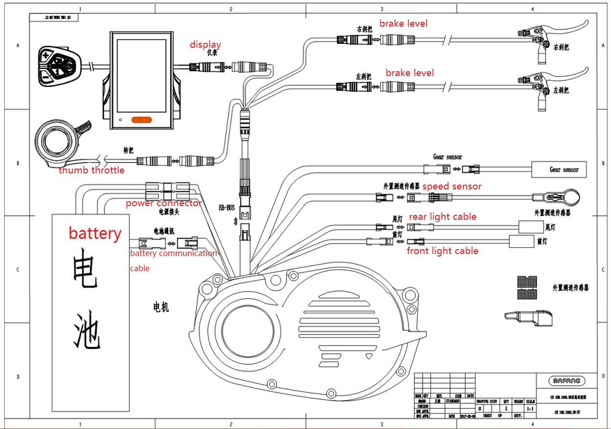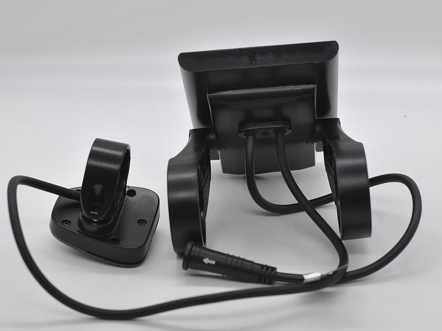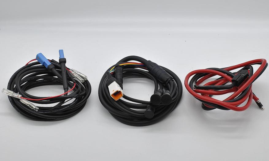 И оставшиеся мелочи. Это крепеж мотора к раме, комплект кабелей (силовой к аккумулятору, кабель 4T и кабели для двух фар) и датчик скорости с магнитом на спицы. Разъемы с влагозащитой и защитой от неверного подключения.