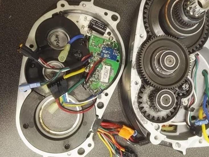 Вот показательная картинка — сравнение силовой части Bafang G510 ultra и BBS HD. И в том и другом моторе заявлено в характеристиках 1000 Вт, да-да, мы верим. Хотя даже на моем экземпляре на заводской наклейке указано 48 В и 30 А, что дает почти 1,5 кВт.
