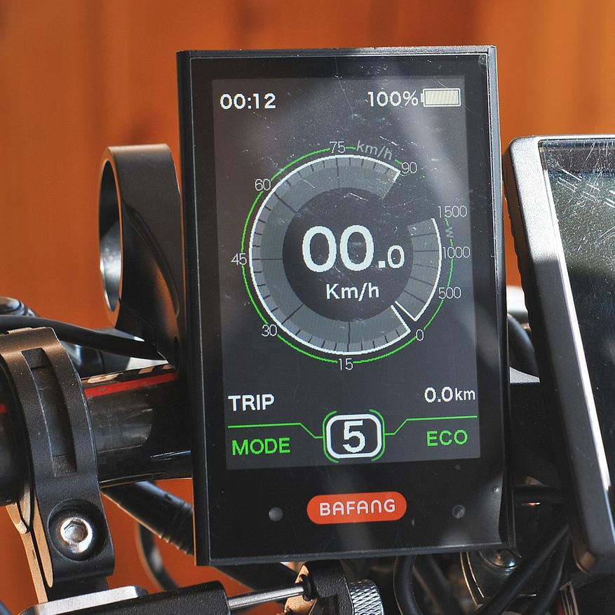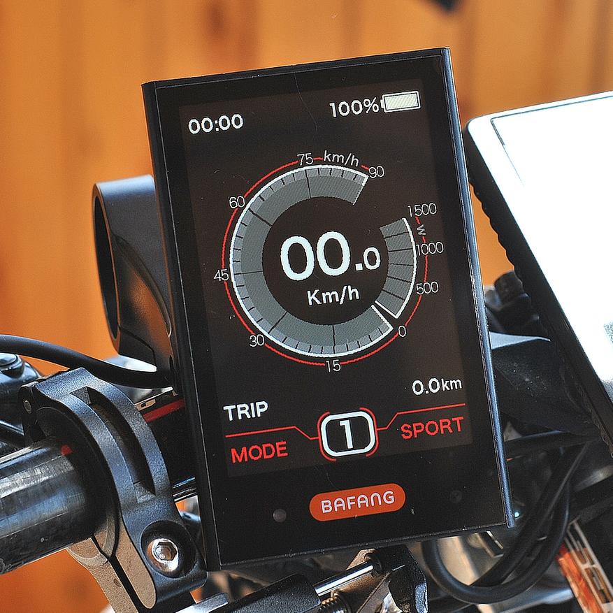 Посмотрим на возможности экрана контроллера. Вот сравнение с версией от Bafang BBS. Экран размером 75х50 мм (стал чуть больше) наглядный и контрастный. Скорость загрузки — несколько секунд.