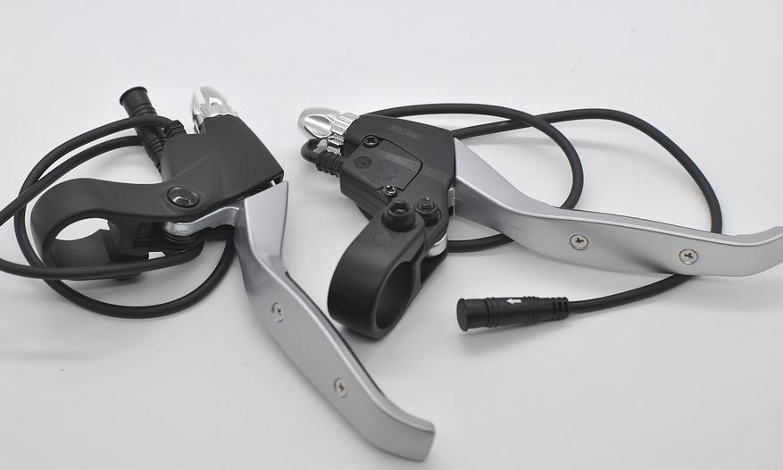 Тормозные ручки, на мой взгляд атавизм. Потому что они под механические тормоза. Да они удобные, оснащены концевыми выключателями мотора. Но! Они под механические тормоза. Даже на обычных велосипедах на мускульной тяге повсеместно используют гидравлические тормоза, они намного эффективнее. На электровелосипед с центральным мотором 1 кВт просятся четырехпоршневые гидравлические тормоза. А концевики для них можно купить отдельно с нужным разъемом — там геркон и магнит.