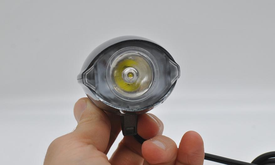 Фара в комплекте откровенно слабая и светит тускло. 6 В питание, а выдает 3 Вт. Хватит ее только для режима ДХО. Можно ее расценивать как бонус к комплектации.