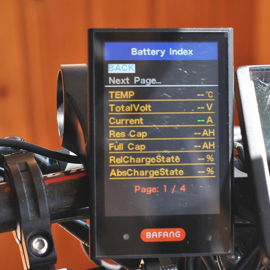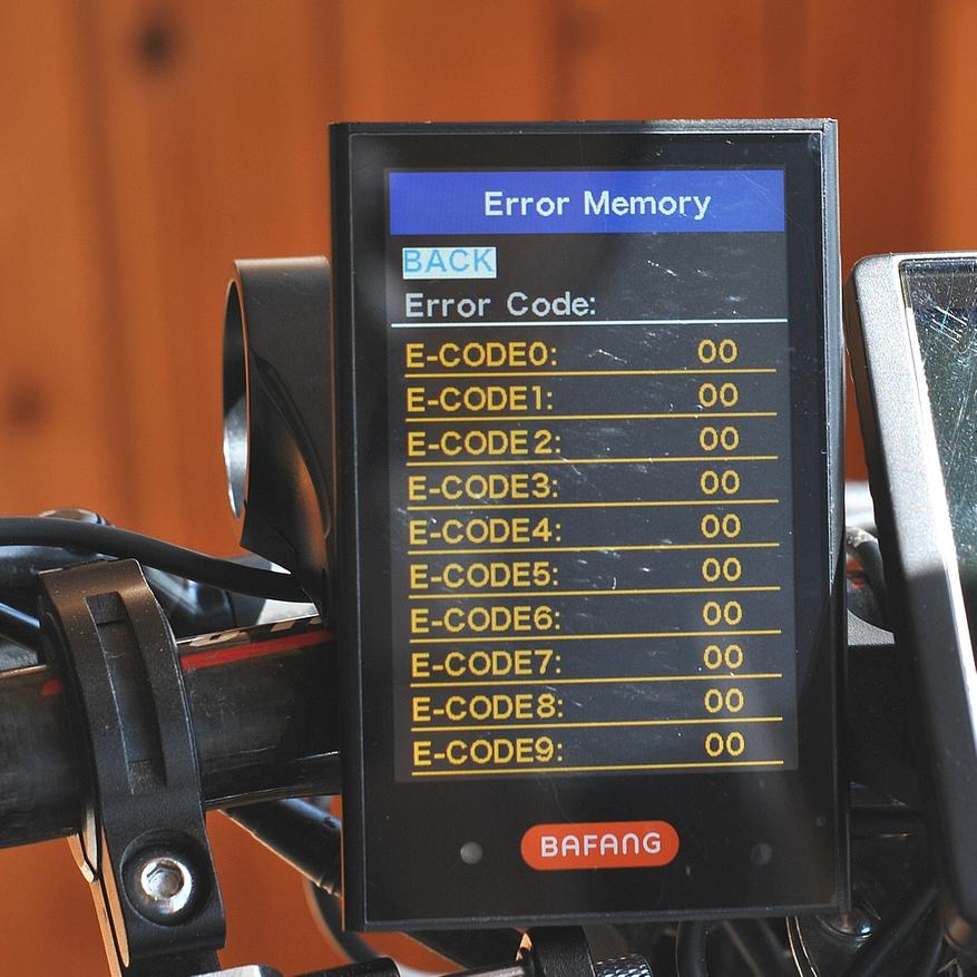 Меню экрана с настройками, параметры батареи работают от спец разъема и коды ошибок для диагностики мотора.