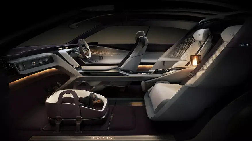 Компания Bentley продемонстрировала концепт EXP 15, задающий облик первого электрического автомобиля марки. Новинка представляет собой трёхдверный приподнятый седан с тремя посадочными местами и встроенным местом для питомца, смещённым на место переднего пассажира.
