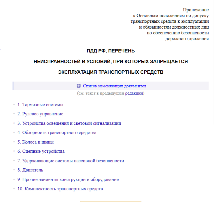 Давайте посмотрим в ПДД, где указан список неисправностей, из-за которых запрещается эксплуатация транспортного средства: